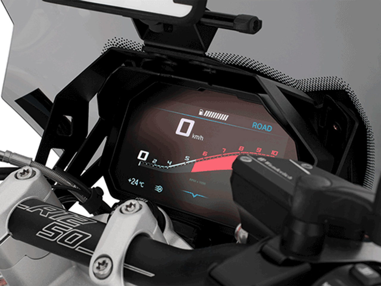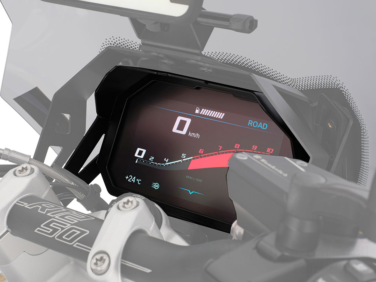 R1250Rのカスタムパーツ メーターカバー上部がひさし状になっているため、太陽の映り込みなどを軽減し、正確にメータを確認することができます。安全性も向上。 装着もR1250Rのメーターパネルに嵌めこむだけの簡単設置。 |
