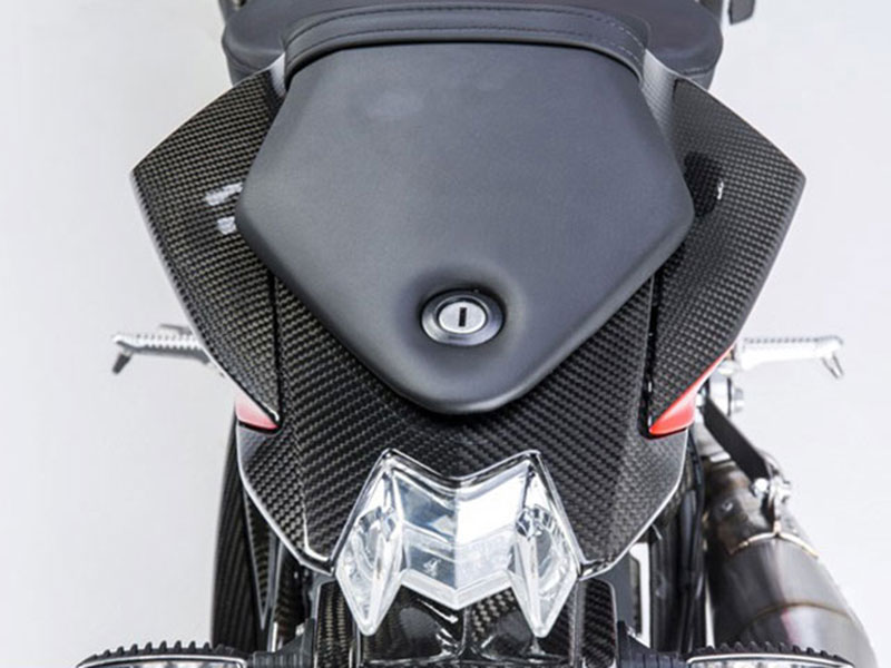 スワイプでスクロール、クリック(タップ)で拡大表示 | カーボン製の右側エンジンカバー。耐候性の高い公道仕様。レースでの使用も可能。 | |||