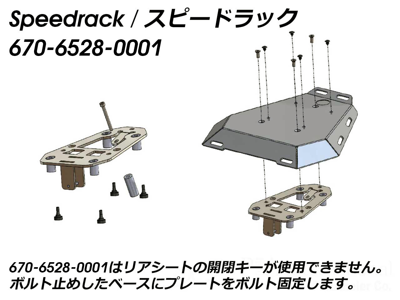 | 適合車種 | タンデムシート置き換え型リアラック 「スピードラックEVO」または「Minirack/ミニラック」または「スマートラック」搭載車 | ||