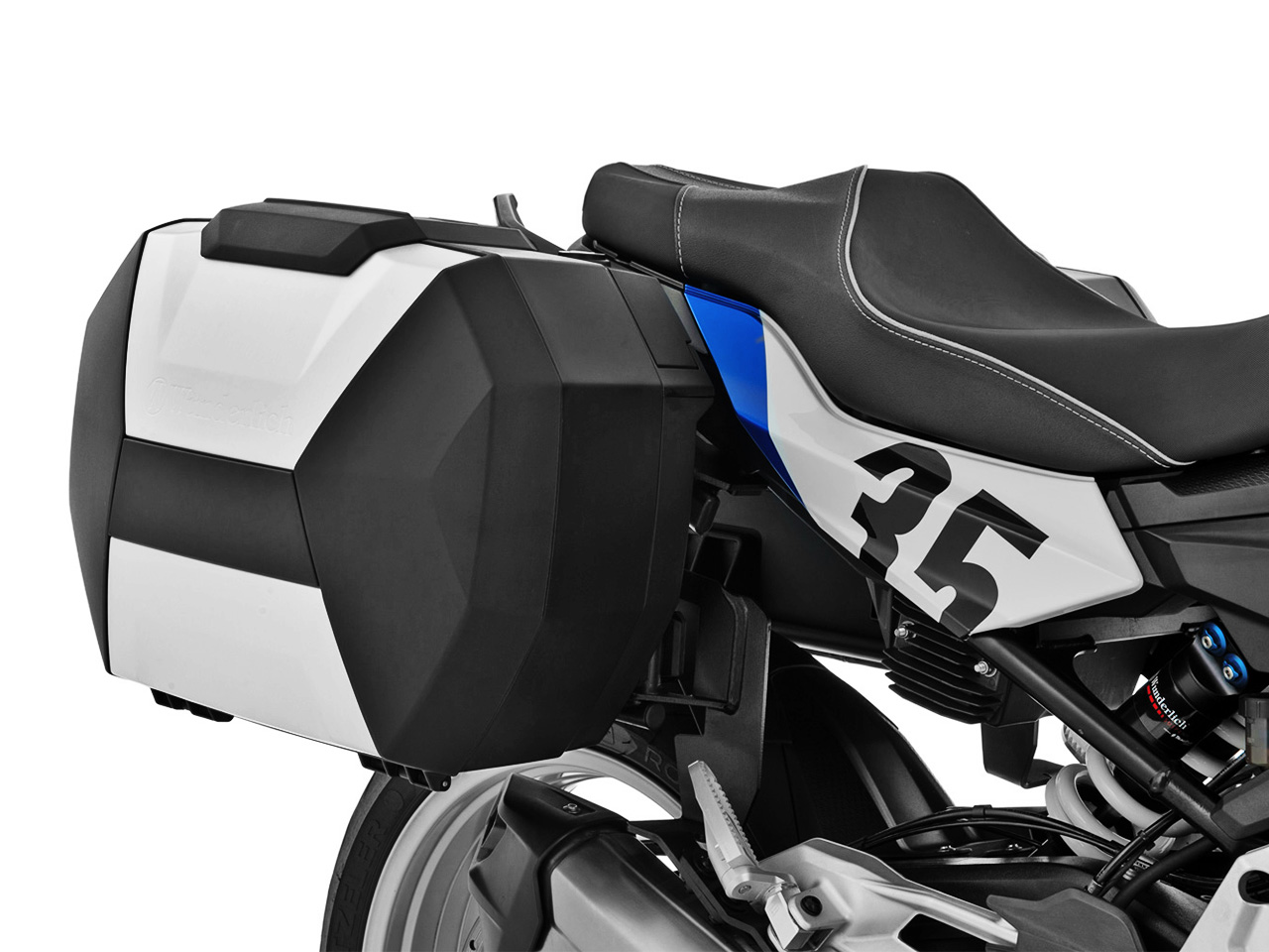 スワイプでスクロール、クリック(タップ)で拡大表示 | F900GS アドベンチャーのカスタムパーツ スマートな剛健デザインと機能美の融合 カーボン調の化粧板をあしらい、剛健さとアーバンスタイリッシュの両立を実現したプレミアムサイドケース。