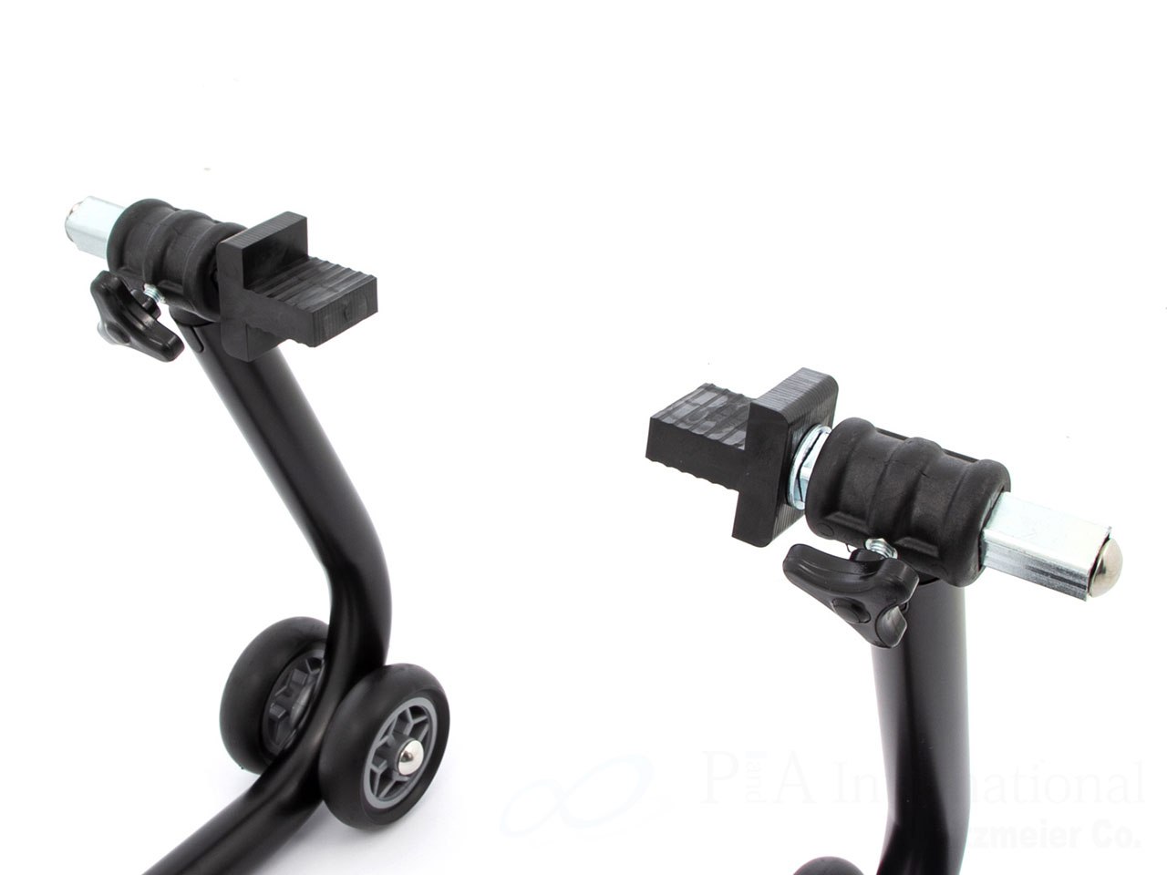 スワイプでスクロール、クリック(タップ)で拡大表示 | コンパクトで理想的なレースパドックスタンド。リア用。 メンテナンスの際には非常に重宝します。 一人でリフトアップが可能です。 使用にはバイクスタンドサポートが必要です。 |