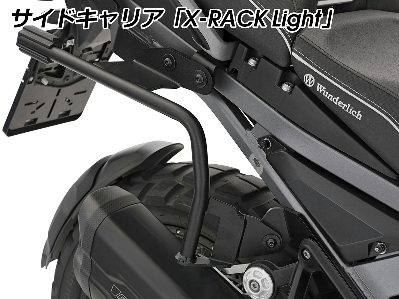 さらに1箇所のキー操作で、キャリアへの設置とバックの開閉ロックが可能。 ダブルロックシステムにより 簡単操作、鍵穴の少ないすっきりとした外観を実現しました。 ※標準で専用キーが付属しています。 ※オプションのカスタムシリンダーに交換すれば、車両キーとの共通化が可能。 余分なキーを持ち歩く必要がなく、鍵を使い分ける煩雑さがありません。 容量 : 左右それぞれ20リットル(拡張時30リットル)、最大合計60リットル 寸法 : 幅500mm × 高さ390mm × 奥行き270mm(拡張時340mm) エンジニアリング樹脂製 ケースの取付に必要なホルダー Wunderlich サイドキャリア「X-RACK Light」がセット。 非常に堅牢な構造と、精密な設計によって高い安定性を実現。 搭載した際の重量バランスの最適化にも重点が置かれ、走行時の安全性にも留意されています。 さらに、L字型のキャリアはケースを外した状態で目立ちにくく、車体のイメージを壊しません。 高耐久パウダー塗装仕上げ。 ※「X-RACK Light」の画像はシリーズ代表イメージです。車種により形状、デザインが異なる場合があります。 |