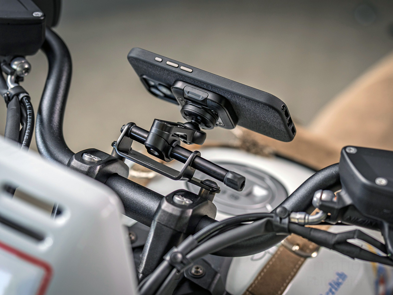 スワイプでスクロール、クリック(タップ)で拡大表示 | メーター手前の見やすい場所に設置する汎用ホルダーステー。 多くの汎用ホルダーが利用可能です。スマートフォンをナビとして利用する際などに非常に便利です。 高耐久パウダー塗装仕上げ。 ホルダー取付可能部分 : 直径12mm パイプアダプター 「マルチクランプ」を使うことで、「マルチクランプ」シリーズのスマートフォンホルダー や アクションカメラホルダーが利用可能。 |