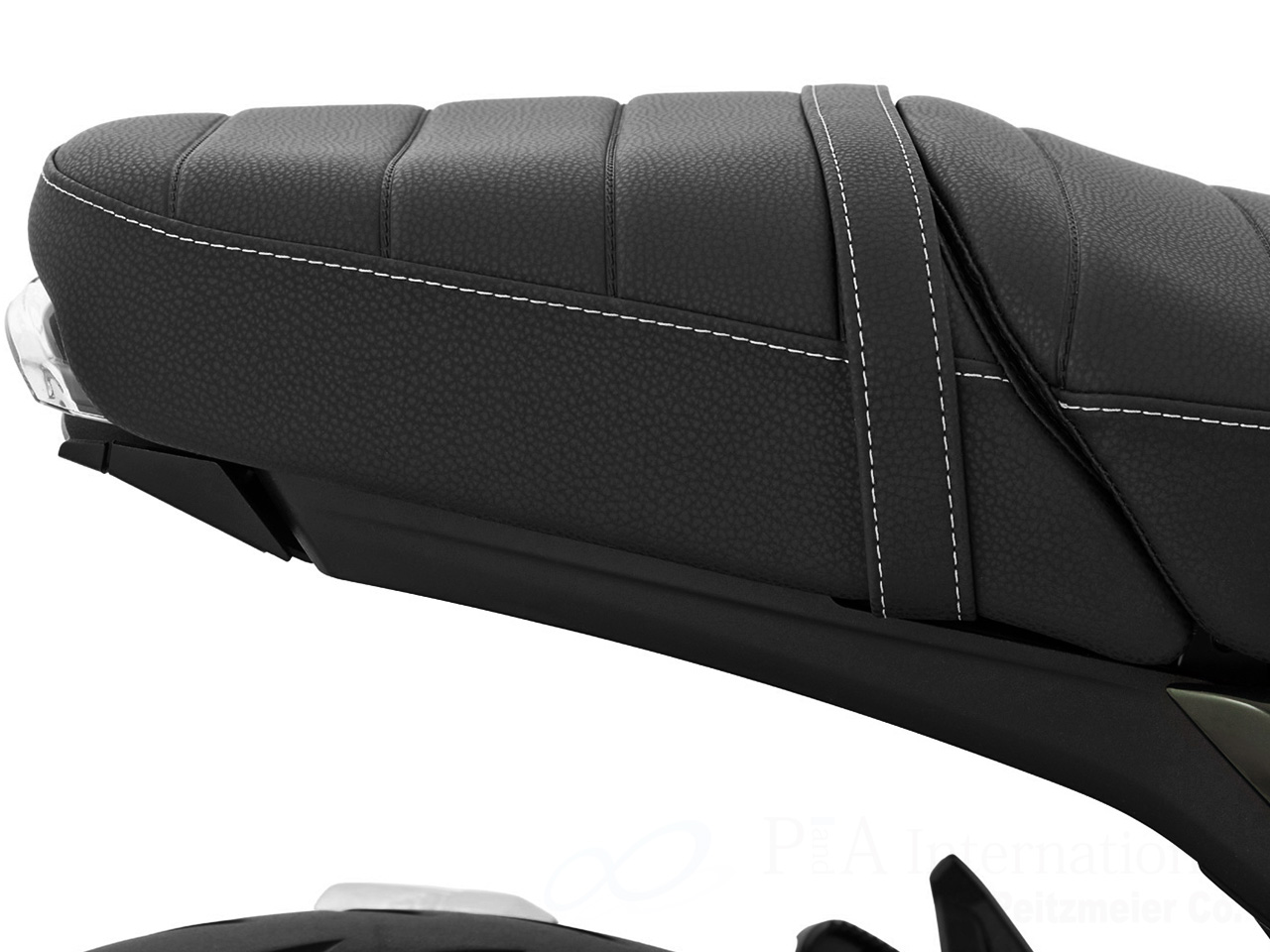 スワイプでスクロール、クリック(タップ)で拡大表示 | R12Sのカスタムパーツ リアシート置き換え型樹脂製シートカバー。 タンク後部から、純正フロントシート、車体リアへと流れるような美しいラインを生み出し、車体をよりスポーティーな印象へアップグレード。 純正のボルト位置を利用し簡単に取り付けが可能です。また、元のシートへも簡単に戻すことができます。 純正のリアフェンダーはもちろん、Wunderlich フェンダーレスキット との併設も可能。 車体リアの印象をよりスタイリッシュに仕上げることが可能です。 ラゲッジラックと一緒になった Wunderlich 「リアコンバージョンカバー with キャリア」 もラインナップ。 車体のイメージをスポーティーにしつつ簡単に積載量を増やすことが可能です。 |