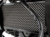 スワイプでスクロール、クリック(タップ)で拡大表示 | 冷却系は非常に重要なパーツにもかかわらず、ダメージの受けやすい前輪の直後に配置されています。 表面積を増やすためのフィンは薄く、飛び石などでかんたんに潰れてしまいます。 このオイルクーラーガードは丈夫で軽量なメッシュを設置することにより、冷却性能に影響を与えることなく大切なオイルクーラーを保護します。 |