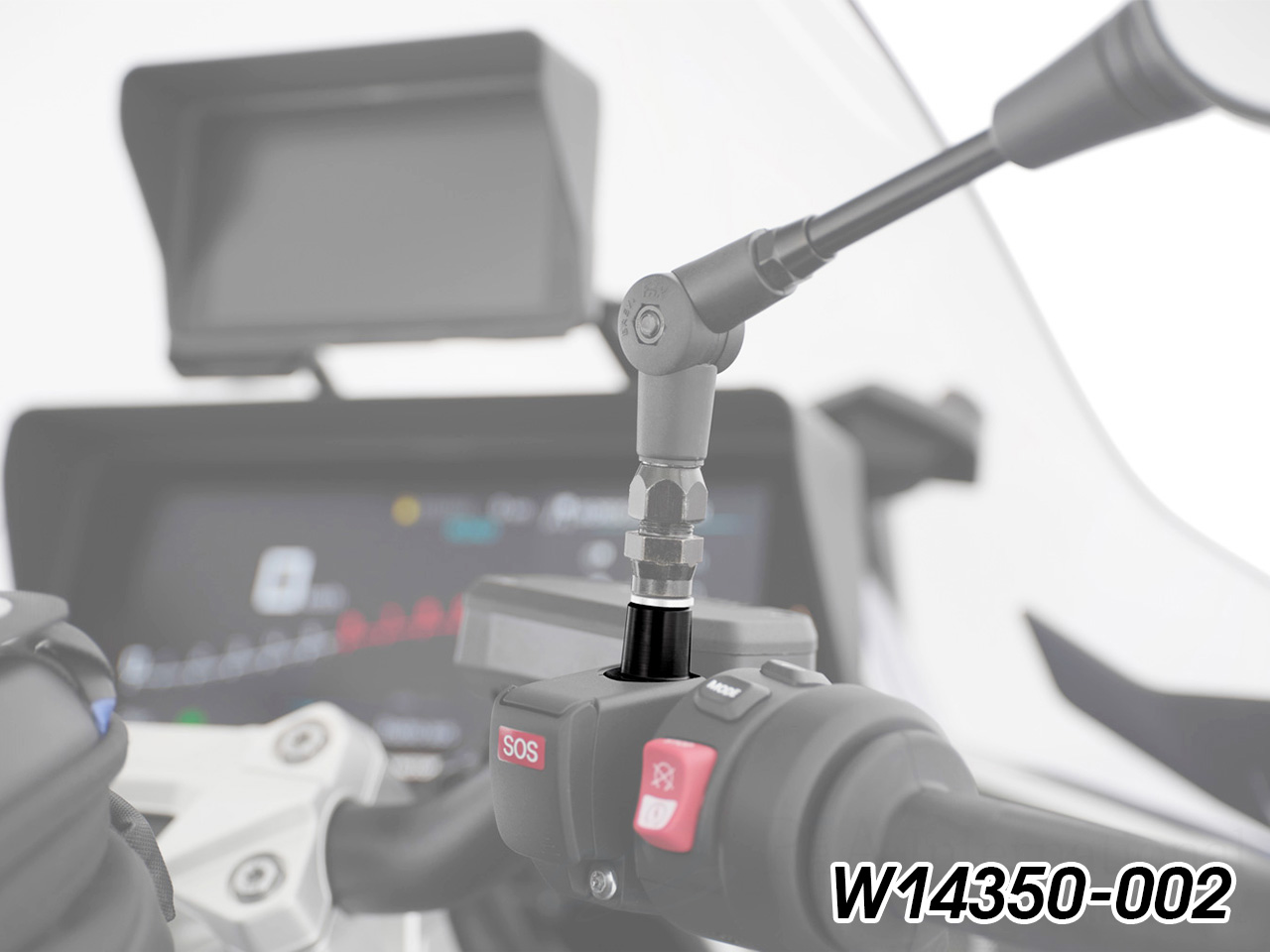 R1300RTツーリング カスタムパーツ R1300RTの純正ミラーは角度を変えても必要な視界が得られないなど、不満や不安を覚えるかもしれません。 これは純正ミラーがハンドルと同じ高さ、また、ハンドルよりも前にあるため、視線移動が大きく、ミラーに映り込む障害物も多いためです。 このサブミラー取付キットを使えば追加のミラーを一般的な位置に設置可能。 自然な視線移動と良好な視界でその不満、不安を解消し、安全性を向上させます。 純正ミラーのデザインが車体と一体化しているため、ミラーを追加しても違和感がなく、車体イメージを崩しません。 左右セット。 ミラーは別売の Wunderlich エルゴスポーツミラー 「フラッシュ」/「ラウンド」をおすすめします。 折りたたみ式で角度が無段階に調整可能。さらに「フラッシュ」はアームの長さの調節も可能です。 凸面鏡ガラスによる拡大効果で、より広範囲の視界の確保が可能となります。 |