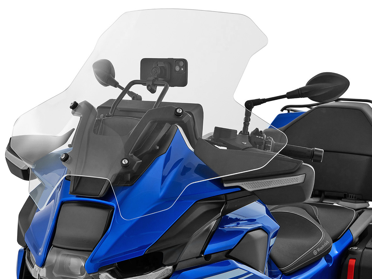 純正スクリーンの上部に取り付けて使用する、高さ、角度調節が可能なスクリーンスポイラー。純正スクリーンでは物足りなかった高速走行での風防効果を手軽にアップさせることができます。不要な時は簡単に取り外すことができます。 スクリーンの厚さが3mm-6mmの物ならば、取り付けが可能です。 外寸(スクリーン) : 横 x 高さ : 約23cm x 7cm ※スクリーンを挟み込んで取り付けるタイプのため、上端に折り返しのあるスクリーンには使用できません。 ※商品は汎用品ですが、一部車種についてはメーカーで取付確認がされています。詳細は適合情報の全車種表示をご確認ください。 ※BMW R1250RS / R1200RSLCは専用の W42350-201 / W42350202 をお求め下さい。 |
