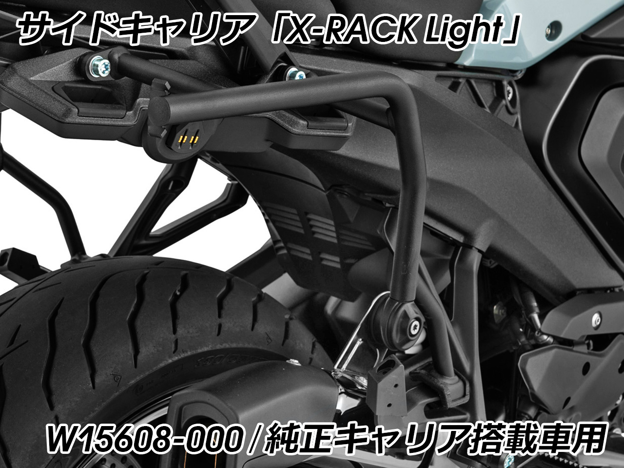 | 適合車種 | BMW R1300R ※標準マフラーと純正オプションAkrapovicマフラーのみ適合確認済 R1300RS ※標準マフラーと純正オプションAkrapovicマフラーのみ適合確認済 ※パニアケースホルダーのないBMWのラゲッジラックを搭載している場合は追加のマウントキットW15610-012が必要 |