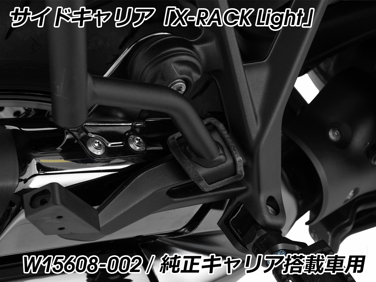 | 適合車種 | BMW R1300R ※標準マフラーと純正オプションAkrapovicマフラーのみ適合確認済 R1300RS ※BMW純正ラゲッジラックが装着されており、パニアホルダーが未装着の場合は、アタッチメントキット W15610-012が別途必要 |