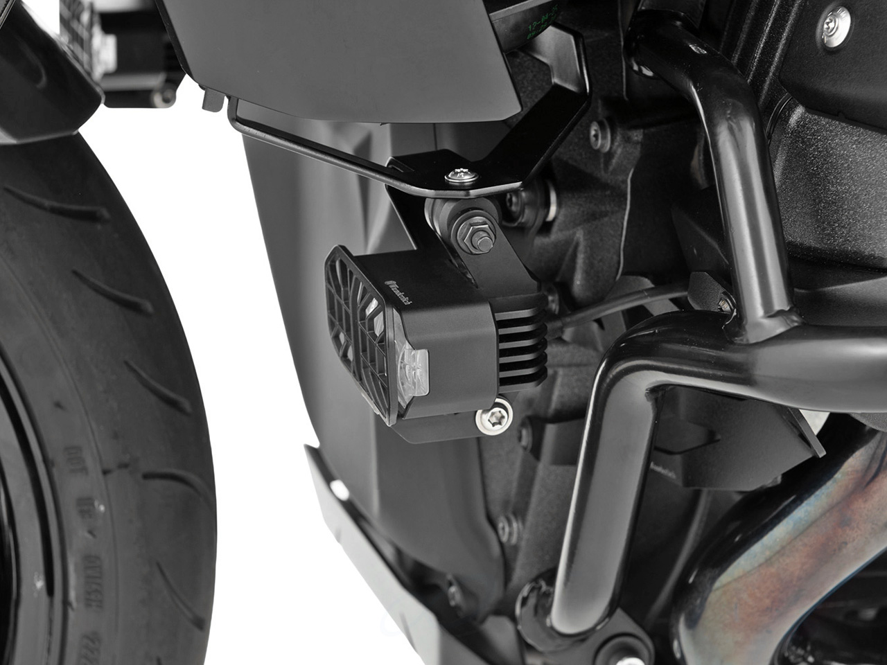 スワイプでスクロール、クリック(タップ)で拡大表示 | R1300R用 車検対応 高性能LED補助灯 悪天候や夜間の視界を大幅に拡大し、アクティブセーフティを最適化します。 LEDの光スペクトルは、夜間でもリアルな色彩表現を提供し、疲労感の低減を保証。 雨天時や霧、夕暮れ時、木陰の森の中など、あらゆる照明条件下だけでなく、見落としによる事故のリスクを大幅に低減。 バイクのフロントシルエットと外観を視覚的に大きく見せ、発光色と相まって、すべての道路利用者からの視認性を大幅に向上。 「MICROFLOOTER 3.0」 の特徴