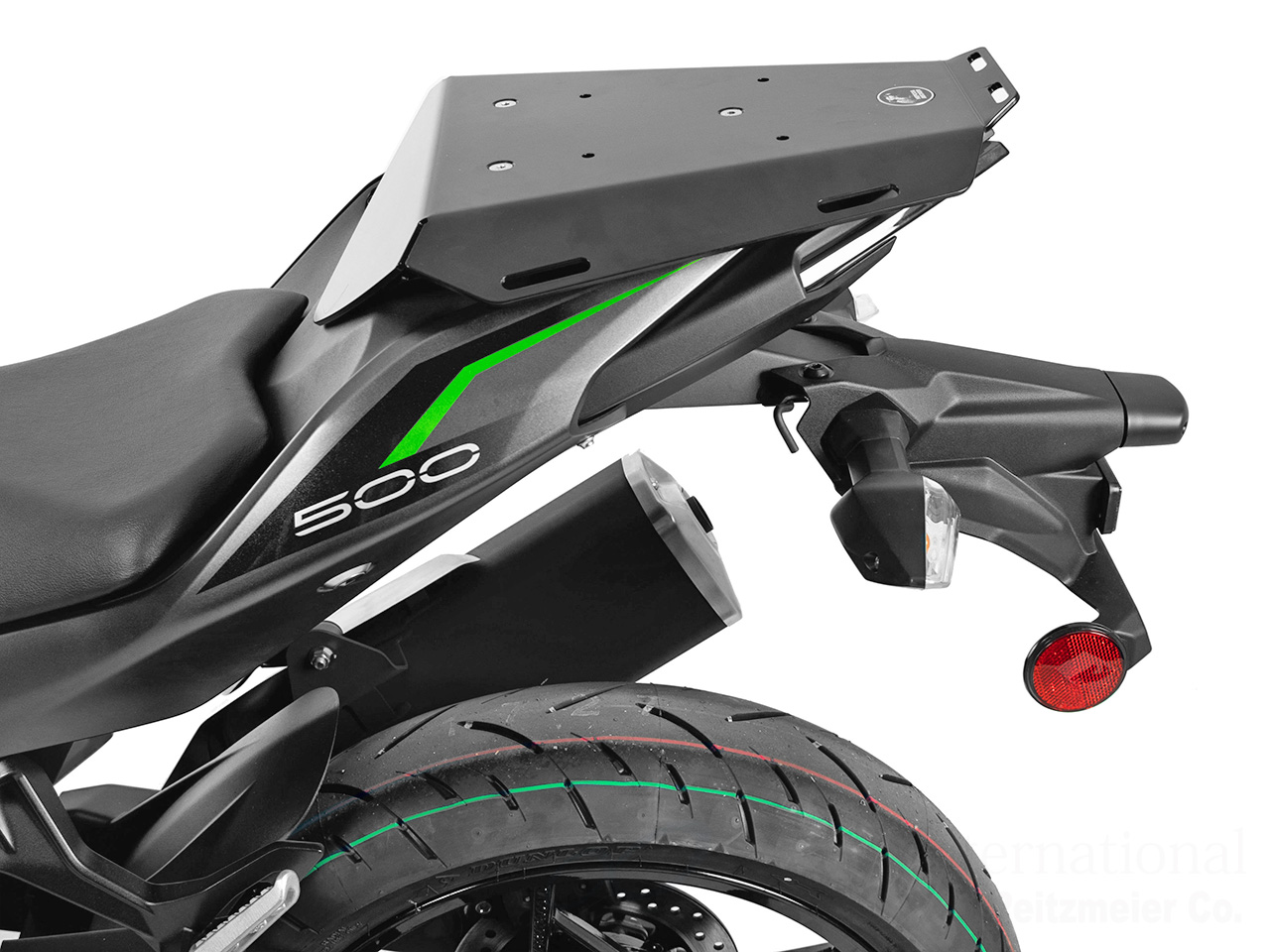 Z500のカスタムパーツヘプコ&ベッカーのタンデムシート置き換え型リアラック「Speedrack EVO」。 ソロライディングの際にタンデムシートと置き換えることによってリアラックとしてスペースを有効活用。 スーパースポーツ、スポーツバイクに荷物の積載を可能にします。 荷物を固定するベルトなどを留める為のフック受けも多数あり、街乗りからツーリングまで、快適にご利用頂けます。 付け替えにかかる時間は30秒もあれば充分なほど、簡単に交換が可能です。 オプションで下記を装着可能。荷物の積載が容易になります。 ※Speedrack EVOの標準推奨耐荷重は7.5kgです。但し、モデルによっては異なる場合があります。この場合はマニュアルに記載がございますので、必ずご確認下さい。 |