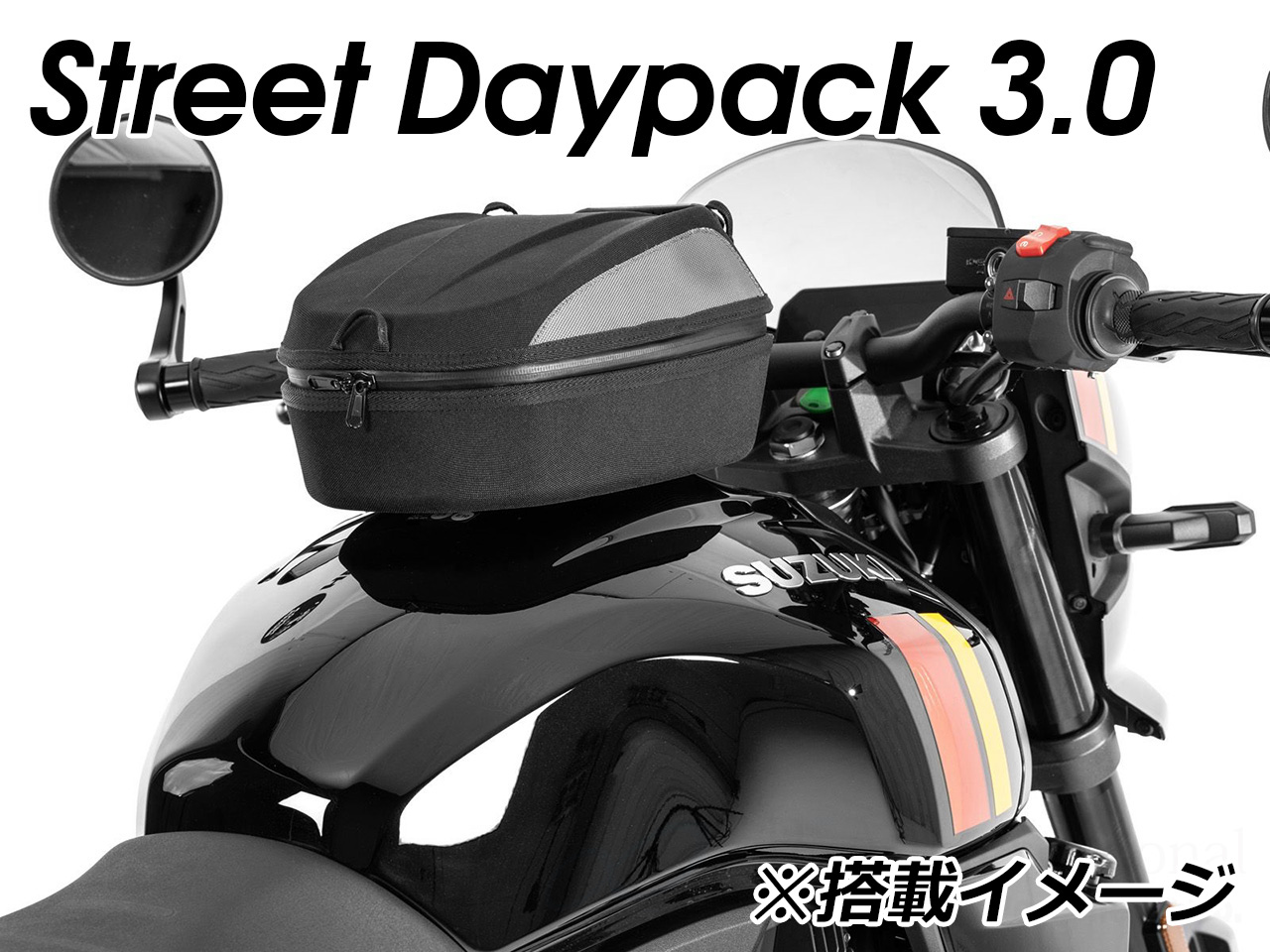 スワイプでスクロール、クリック(タップ)で拡大表示 | GSX-8T / GSX-8TTのカスタムパーツ シンプルでコンパクトなデザインと機能性が特徴の「Street Daypack」シリーズ。 Ver.3.0では、デザインが刷新。サイドにリフレクターが配置されたことによって安全性も向上。 タンクへの取付は「マルチベーシック / MultiBASIC」を採用。ワンアクションで車体への取付、取り外しが行え、独自のメカニカルロックにより、強固な固定を実現。高速走行時でも確実にホールドし、安心してライディングを楽しむことができます。 また、ヘプコ&ベッカーの 「スピードラックEVO」や スマートラック、 ミニラックなどの車種別専用のキャリアと、各キャリアに対応したMultiBasicアダプターを併用することで、リアバッグとしての使用も可能。シートバッグホルダー シートパッド MultiBasicを使用すればシートバッグとしても使用できます。 多様な使い方が可能であり、いずれもMultiBasicロックシステムによって簡単に確実な取付が行えます。 容量 4L 外寸 H x W x D : 約15 x 23 x 30 cm 内寸 H x W x D : 約14 x 22 x 29 cm 財布やカメラ、携帯などの身の回り品の持ち運びに便利なサイズ。手持ちハンドル付きで持ち運びも楽々。 ・オプションにスマホバッグを用意。バッグに入れたままでの操作が可能で、スマホをナビとして利用する際に大変便利です。 ・バッグの開閉ロックやバッグの車体へのロックなど様々なセキュリティオプションの使用が可能。 |