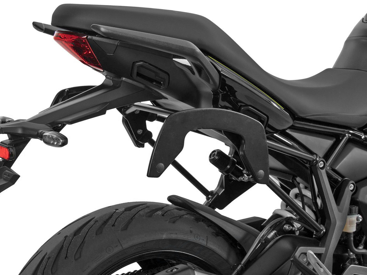 タイガースポーツ800のカスタムパーツヘプコ&ベッカーのC-Bowタイプ サイドバッグ / サイドケース をワンタッチで 着脱可能なキャリア。 シンプルでスマートな構造ながら、確実にサイドバッグ / サイドケースをホールドします。もちろんキーによるロック機構も備えています。 車種別専用設計品。高耐久パウダー塗装仕上げ。 ※耐加重 : 片側 5kg (ケース、バッグの自重を除く) ※サイドケースは別売です。こちらからお求め下さい。 ※バッグの搭載位置を 50mm 前方または後方、30mm 上方または下方に移設する移設キット(オプション)もあります。 |