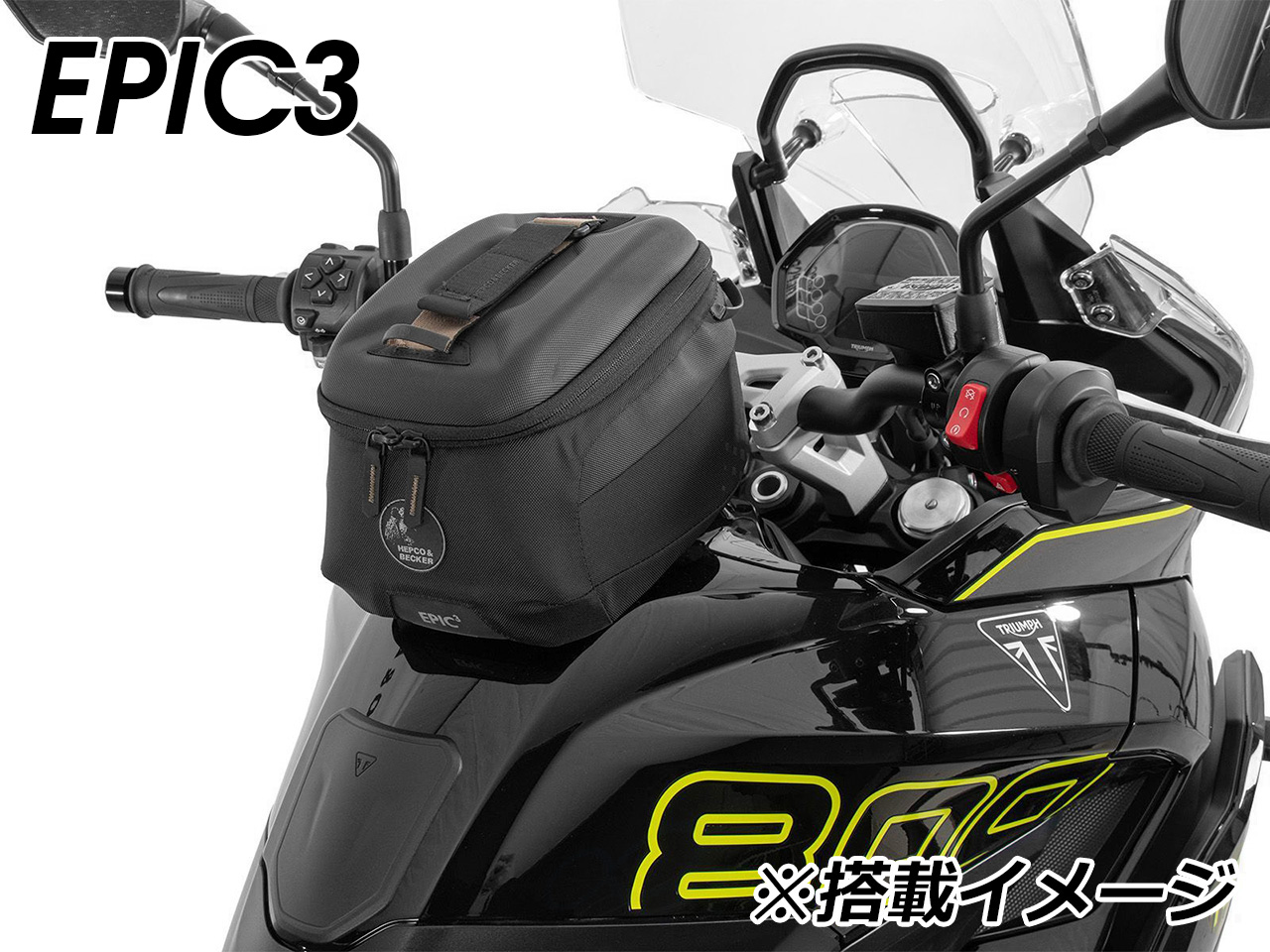 スワイプでスクロール、クリック(タップ)で拡大表示 | タイガースポーツ800のカスタムパーツ ヘプコ&ベッカーのタンクバッグ「EPIC / エピック」は車種別専用の取付キット「マルチベーシック / MultiBASIC」を装着することでワンアクションで車体への取付、取り外しが驚くほど簡単になりました。 しかも独自のメカニカルロックにより、強固な固定を実現。高速走行時でも確実にホールドし、安心してライディングを楽しむことができます。 ・細部までデザインを検討し、バイクのイメージを損なうことなく、最大限の利便性を追求。 ・ソフトバッグでありながら型くずれを起こしにくく、また高いホールド性能を誇り、高速走行でも安心してご利用いただけます (メーカー推奨最大速度 : 130km/h)。 ・防水仕様 : 高い防水性を誇るインナーライニングを装備。 (完全防水を保証するものではありません) ・リッド裏にはメッシュポケットを装備。 ・天面にはグローブなどを収めるのに便利なベルクロベルトを装備。 ・バッグの手前、両サイドにはファスナー付きのポケットを装備。※EPIC3,EPIC6を除く ・サイドに施されたデザインは安全性を高めるリフレクター仕様。 ・バッグの開閉ロックやバッグの車体へのロックなど様々なセキュリティオプションの使用が可能。 ・オプションにスマホバッグを用意。バッグに入れたままでの操作が可能で、スマホをナビとして利用する際に大変便利です。 5種類のサイズをラインナップ。用途に合わせてお選び頂けます。 ※搭載には別途「マルチベーシック / MultiBASIC」が必要です |