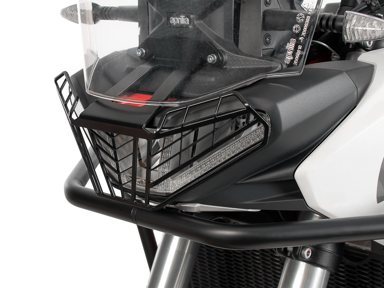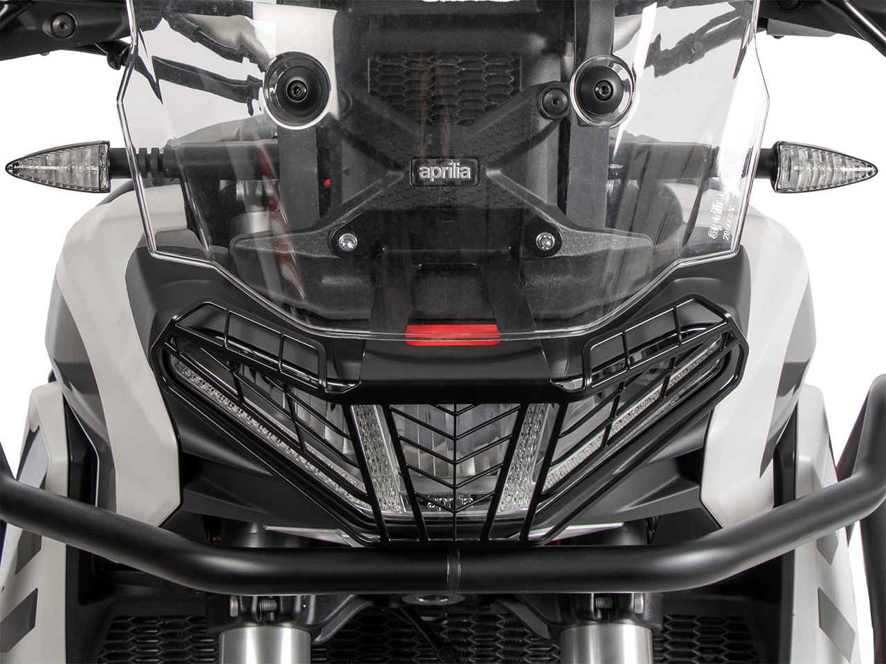 aprilia用 ヘッドライトガード / ヘッドライトグリル をご紹介。飛び石などからヘッドライトユニットの損傷を防ぎます。 特にラフロードの走行を楽しむ際に車体損傷のリスクを軽減してくれます。 危険なバックグレアも発生しないので、夜間走行にも影響しません。 車体の外観もアグレッシブなイメージとなるためドレスアップパーツとしてもおすすめです。 |
