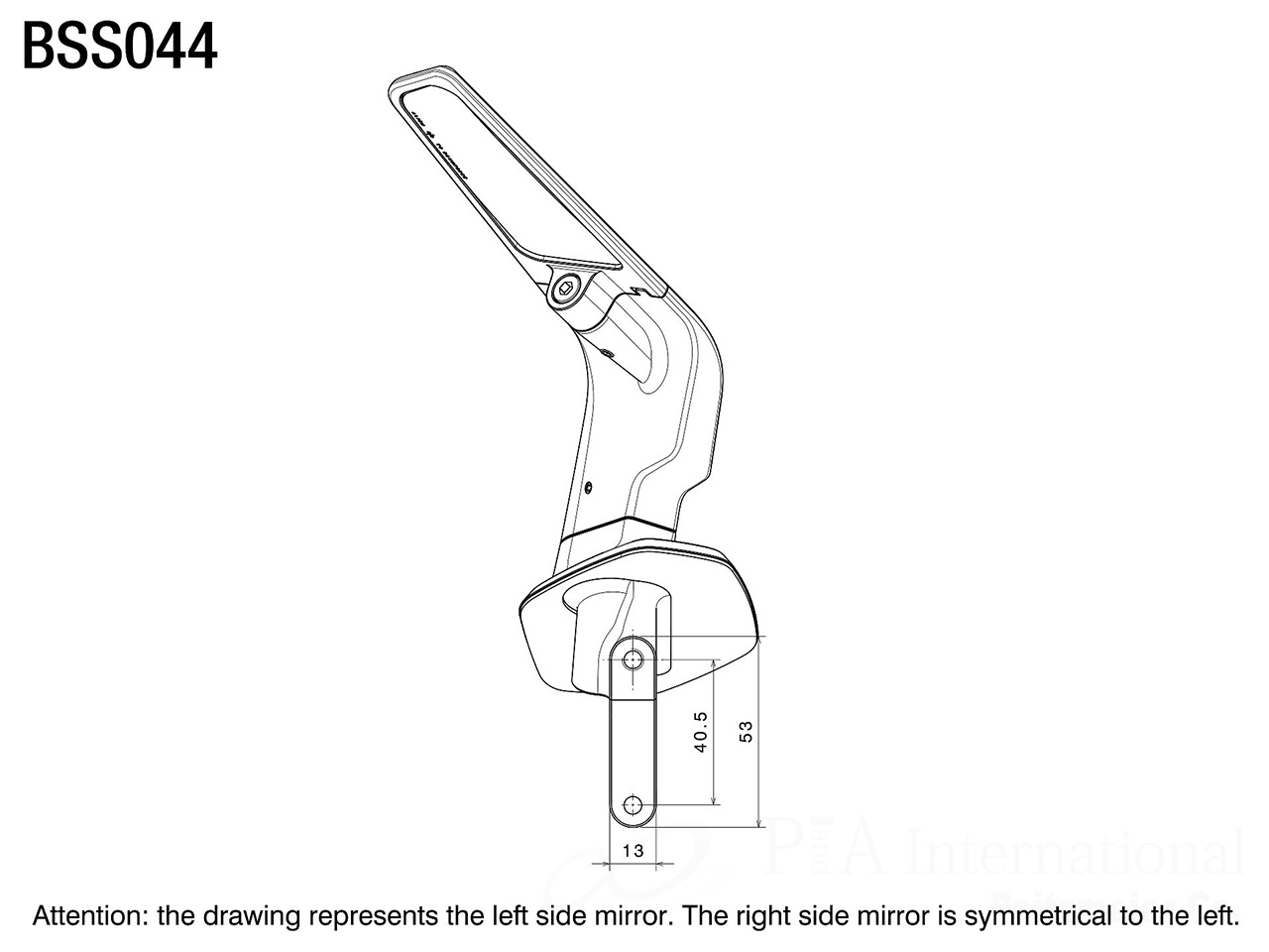 | 備考 : | 中空で内径 Ø13-18mmのハンドルバー、または又はM6のボルト受けがあるハンドルバーにのみ対応 純正ハンドルバーがこの条件でない場合、ハンドルバーの交換、またそれに伴う必要パーツの交換が必要です。 片側 64g ※リゾマミラー BS070、BS071 及び、BS144との併用不可。 |