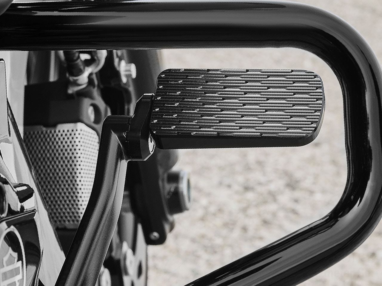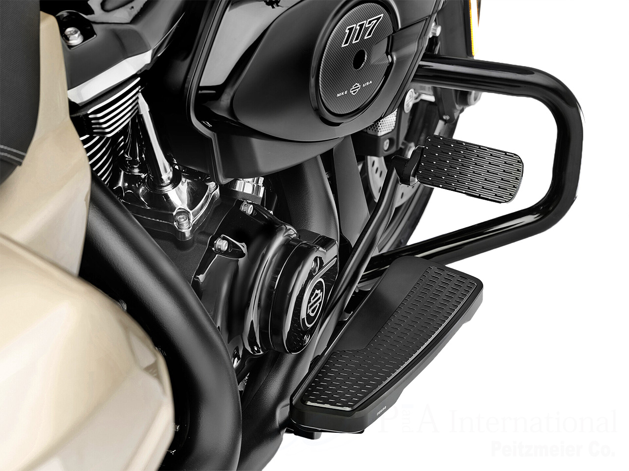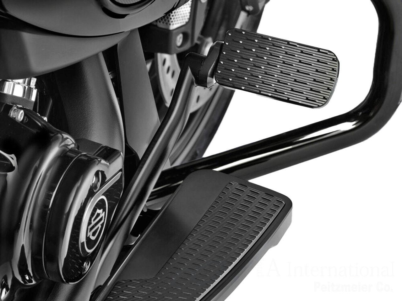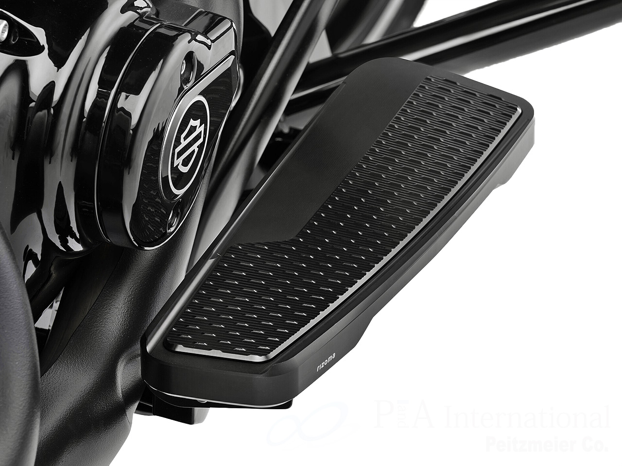精密CNC加工でビレットアルミから削り出されたパッセンジャー用フットレスト。 ペグのトレッドには AMERICANA フロアボード 同じパターンを採用。 高いグリップ性能でパッセンジャーに快適なライディングを提供します。 左右セット |