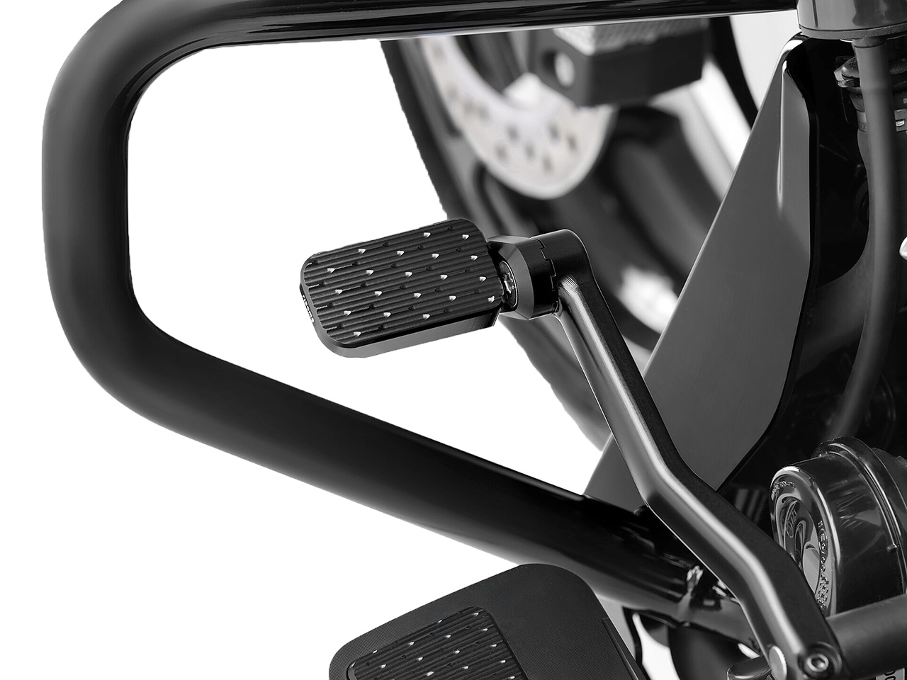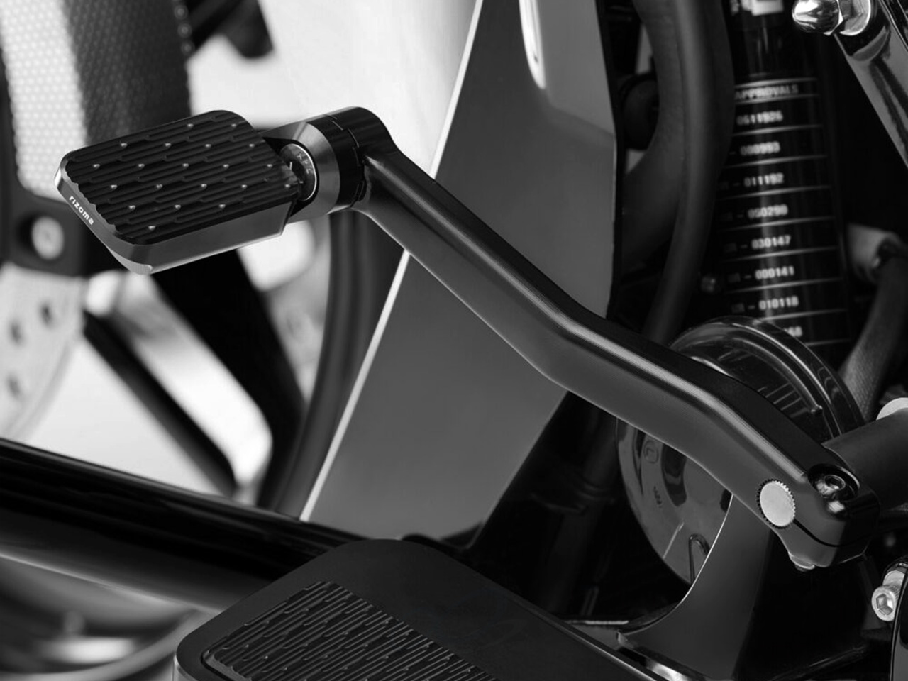 アジャスタブル ブレーキペダル ペダルの位置が8ポジションから選択可能。ライダーのニーズに合わせた正確な調整が可能です。 ペダルの接触面積が大きくなることで踏み外しを防止、安全で快適なライディングが可能です。 精密CNC加工でビレットアルミから削り出され、細部に至るまで高級感を演出します。 |