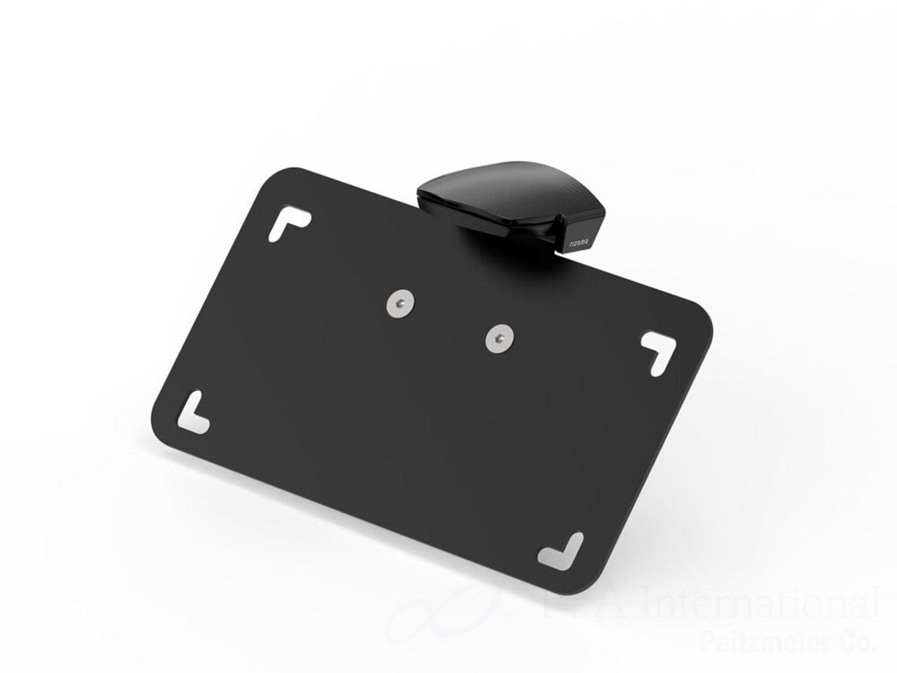 シンプルでスタイリッシュなデザインのナンバープレートホルダー。 車体のリアフェンダーと一体化するように設計されており、純正品よりもスリムな形状を実現しています。 ライセンスプレート灯 (SMD LEDライト)付属。 ※国内ナンバープレートの取り付けには5mm程度の長穴加工が必要です。 ※リフレクターは付属していません。 |