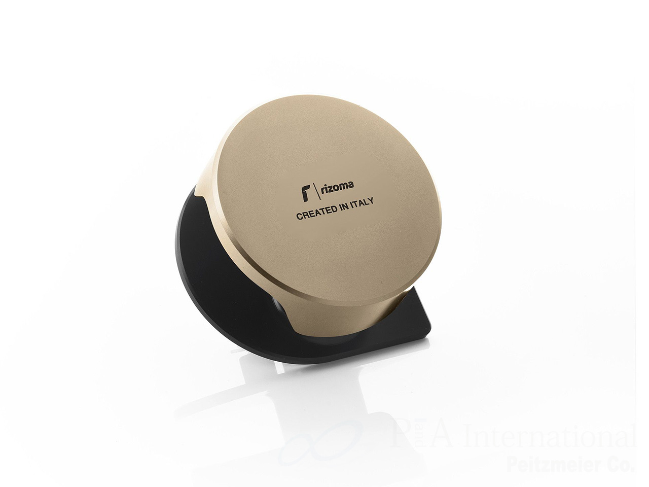 スワイプでスクロール、クリック(タップ)で拡大表示 | Vespaのデザインにマッチする、シンプルでありながらエレガントなデザイン。 アルミビレットからの切削により作製。その為、継ぎ目や溶接痕がありません。プレミアム感の高いデザインを可能とするrizomaのこだわりの一つです。さらにレーザー彫刻が施され美しいコントラストが生まれています。 |