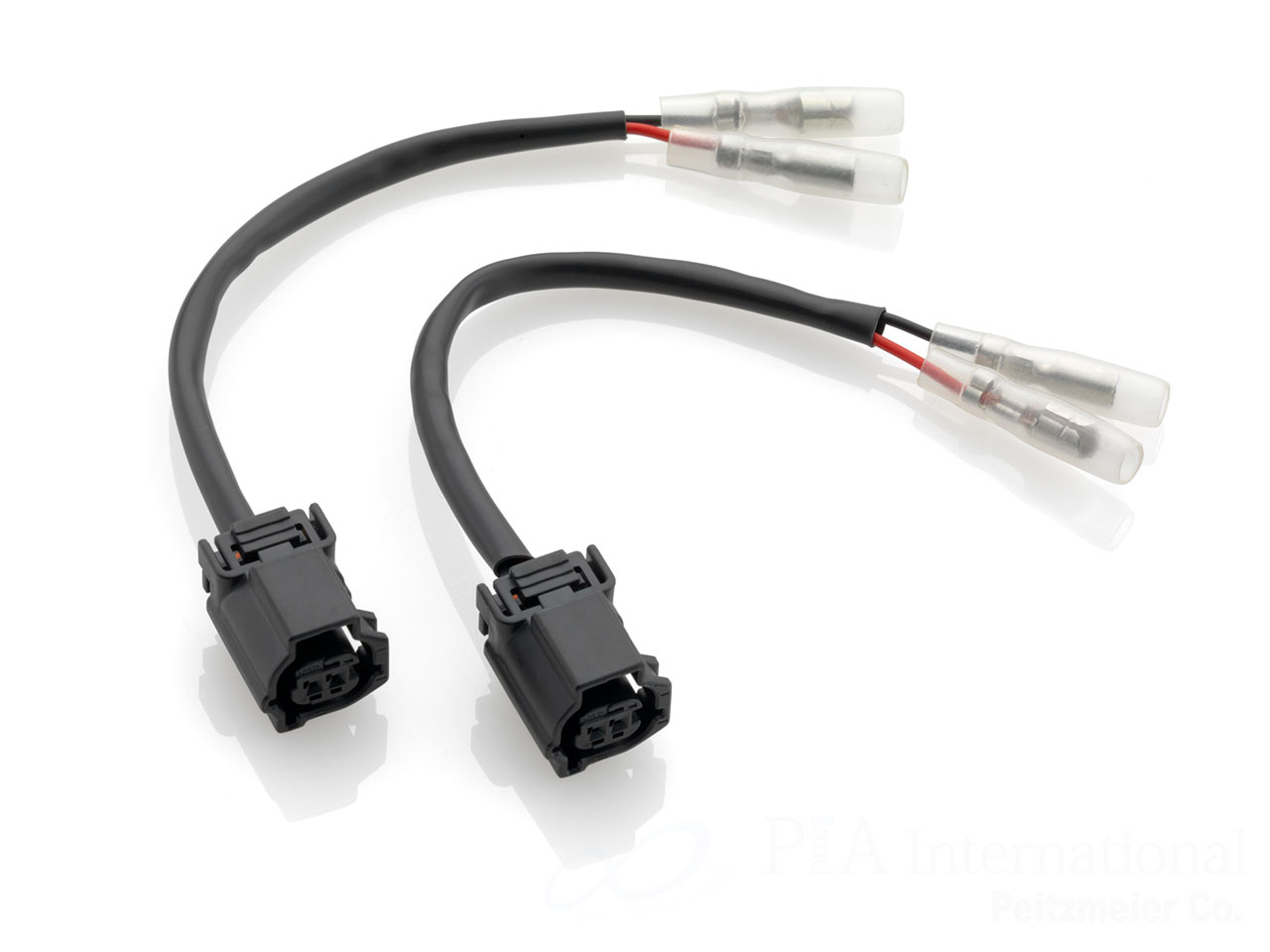 rizomaのウインカーを取り付ける際に便利なケーブルキット。車体の配線を加工することなくコネクターの形状を変更するアダプター。 1セット 2本入り。 |